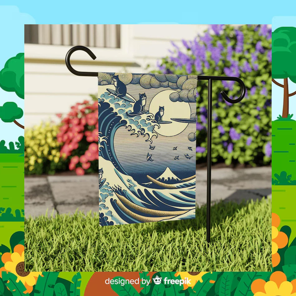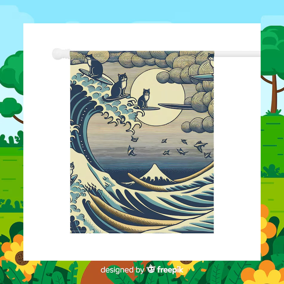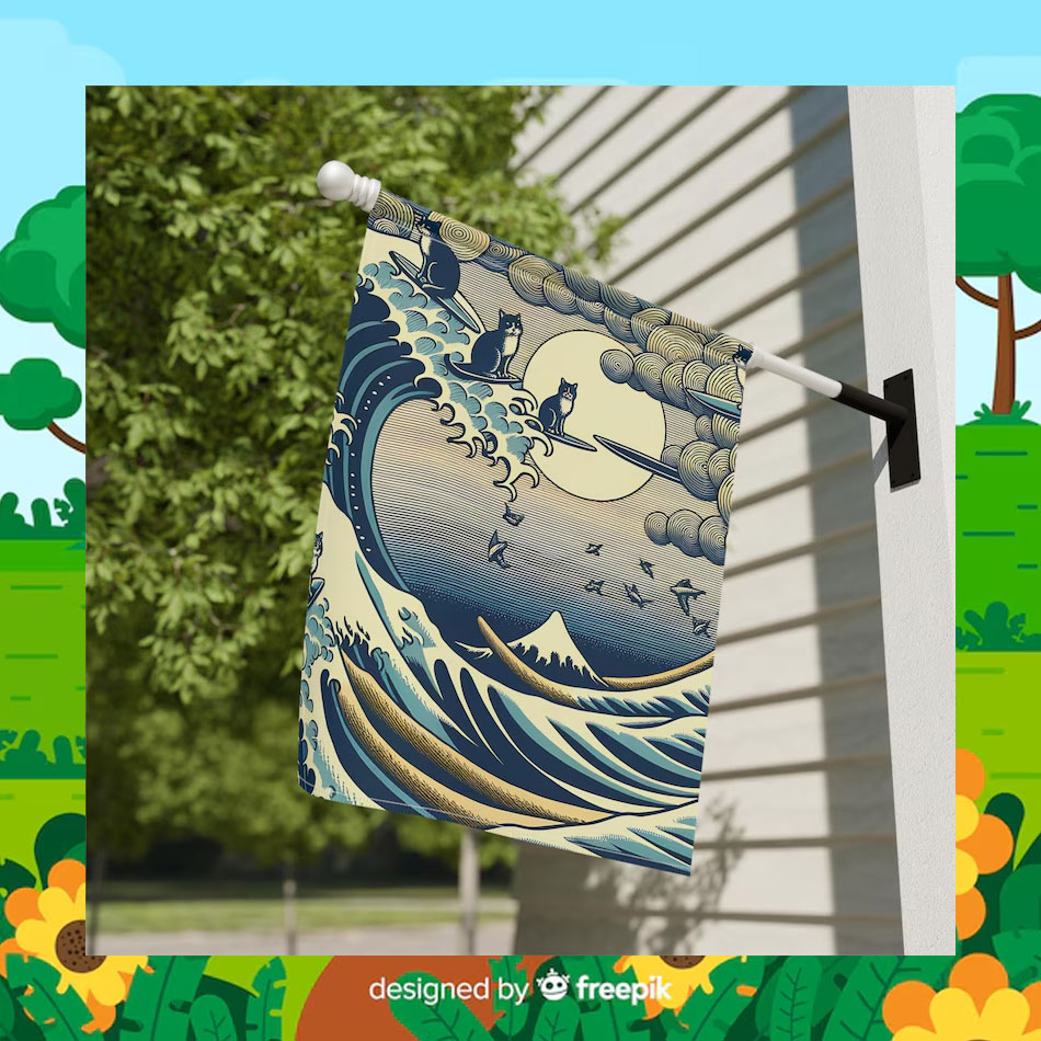 Blue Cat Wave For Kamala Harris Flag