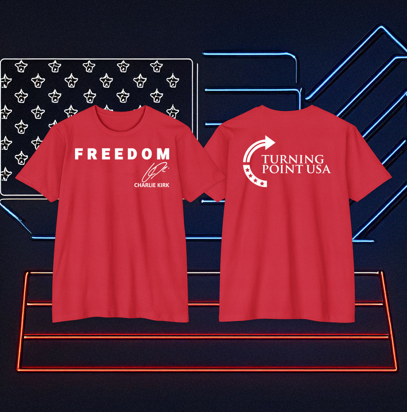 The Charlie Kirk Freedom Red Shirt isn’t just a t-shirt — it’s a bold symbol of unity, courage, and the enduring fight for American greatness.