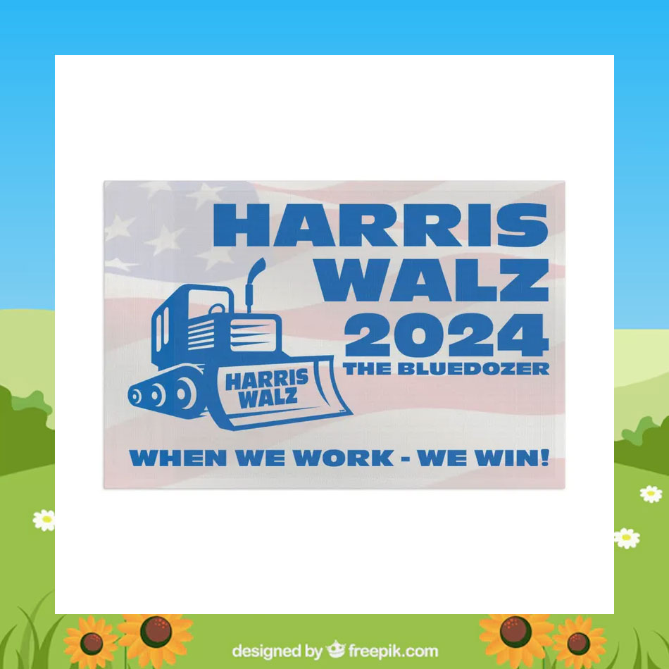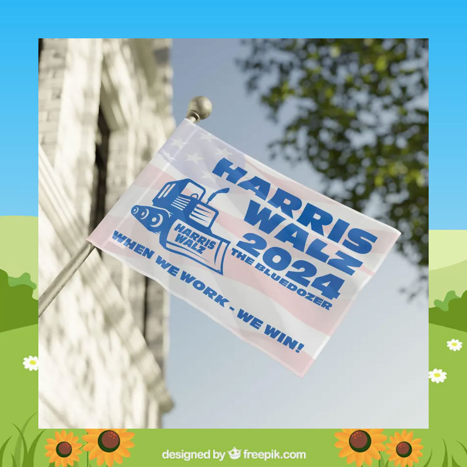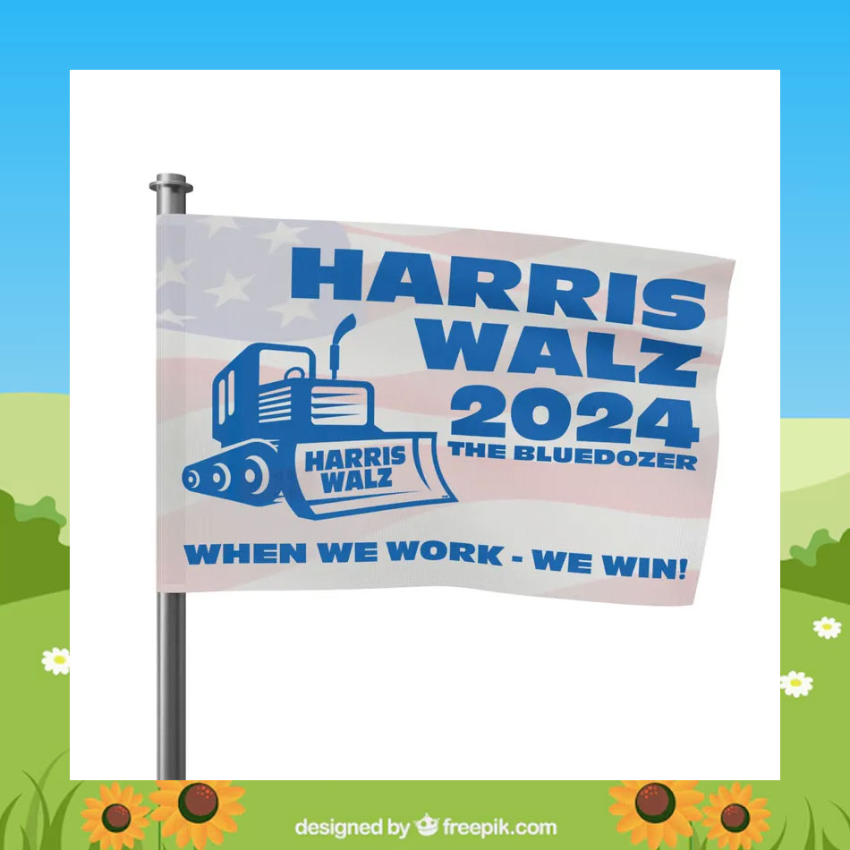 Harris Walz 2024 The Bluedozer When We Work – We Win! Flags