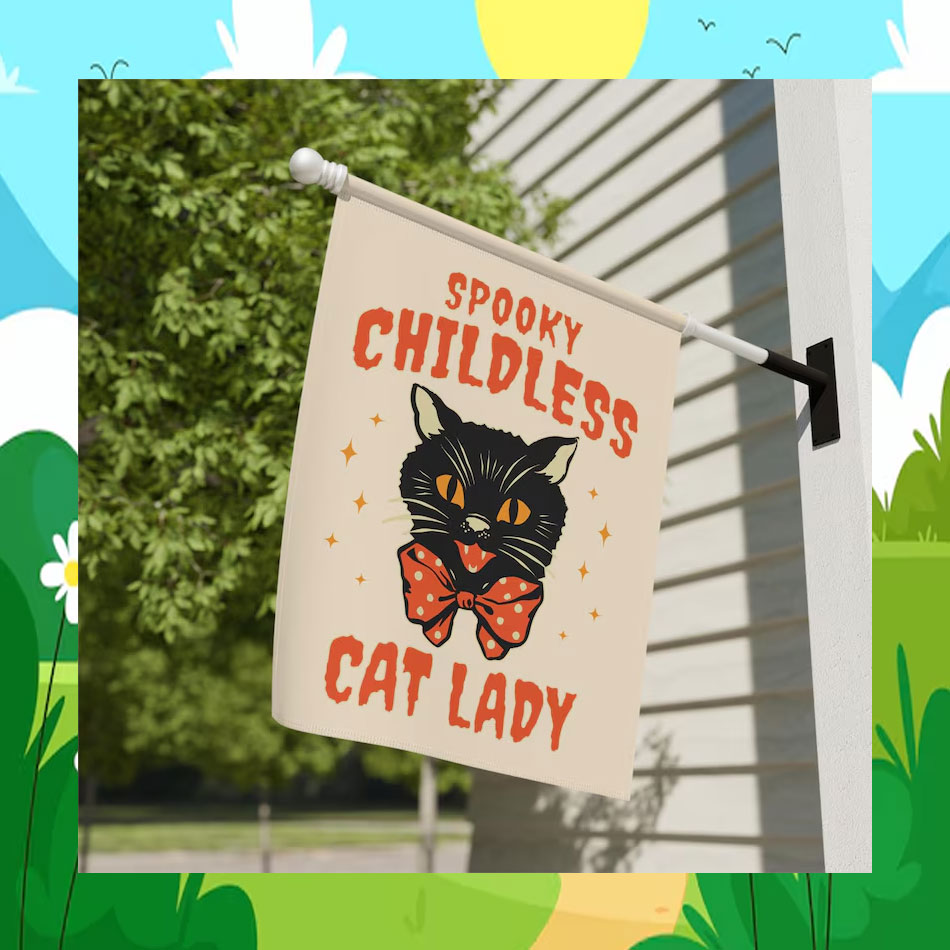 Spooky Childless Cat Lady For Kamala Harris Flag