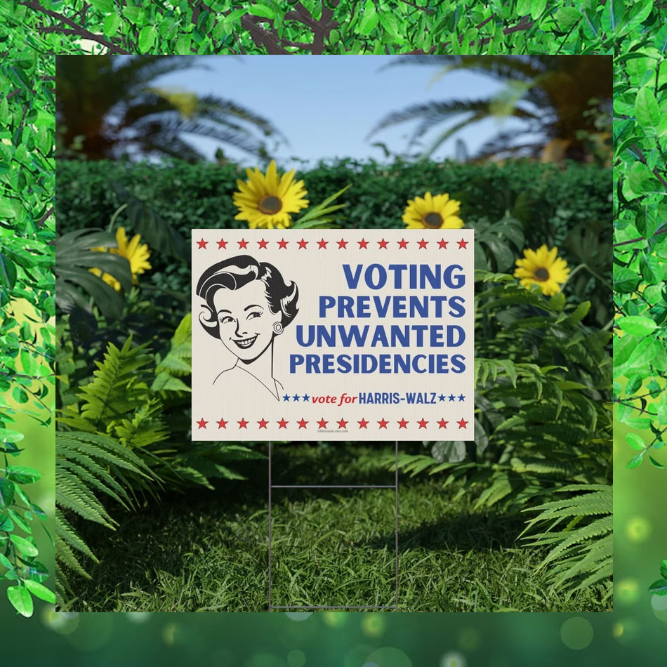 Vote For Harris Walz Voting Prevents Unwanted Presidencies Yard Sign